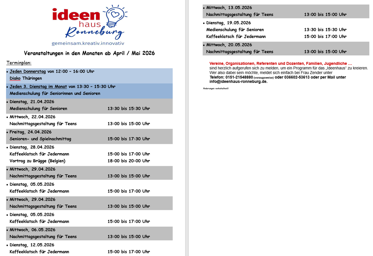Ideenhaus-Programm April/Mai 2026