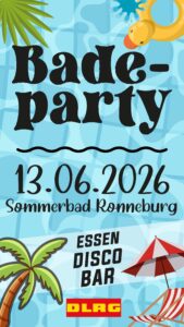 | Samstag, 13.06.2026 DLRG Badeparty Ort: Sommerbad Ronneburg |